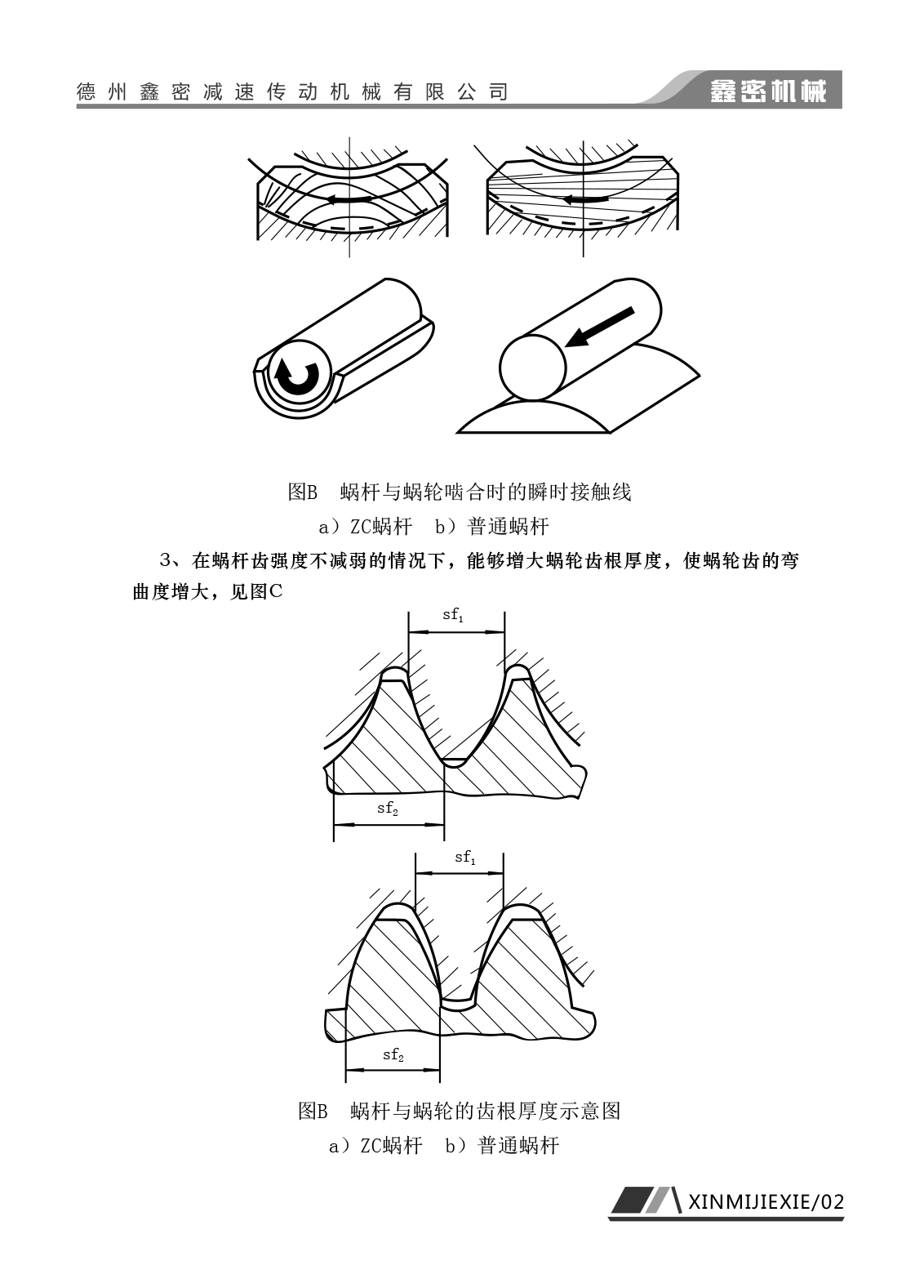 齒型傳動類型:蝸桿齒型加工包含ZC1,ZI,ZA、ZN、ZK,蝸桿頭數1-6頭, 蝸輪和蝸桿兩共軛齒面是凹凸嚙合,當量曲率小,因而單位齒面壓力減小,接觸強度提高.蝸輪蝸桿機構常用來傳遞兩交錯軸之間的運動和動力。
