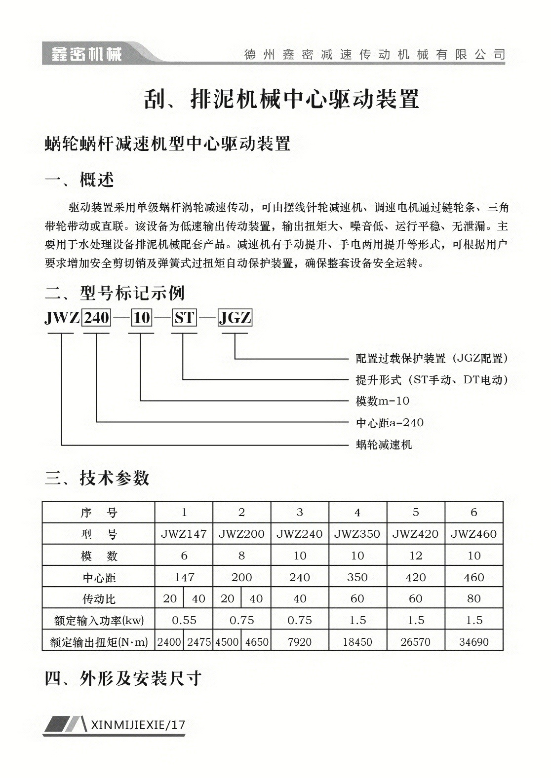 JWZ澄清池刮泥機(jī)專用蝸輪蝸桿減速機(jī)型號(hào)規(guī)格有JWZ147、JWZ200、JWZ240、JWZ350、JWZ420、JWZ460,JWZ672。根據(jù)澄清池大小選擇合適的蝸輪減速機(jī)。