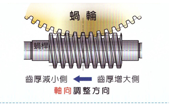 精密無間隙雙導程蝸輪蝸桿系統結構是根據蝸輪蝸桿在正逆運轉時的齒厚不同的變化來設計的,通過蝸桿的軸向移動,使蝸輪蝸桿間的齒隙連續發生變化,保持蝸輪蝸桿的正確位置的基礎上可調整后退距離,從而達到理想的齒隙削除。